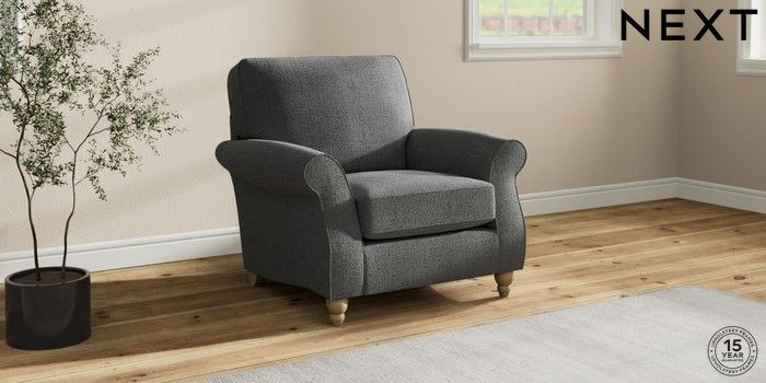 7.2.10 Ashford Armchair Chunky Texture Dark Grey Low Turned - Light | Made Click here to use our website with more accessibility support, for example screen readers