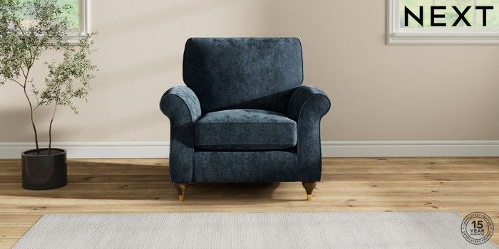 7.2.10 Ashford Armchair Distressed Velour Midnight Blue Modern Turned Metal Cap - Mid | Made Click here to use our website with more accessibility support, for example screen readers