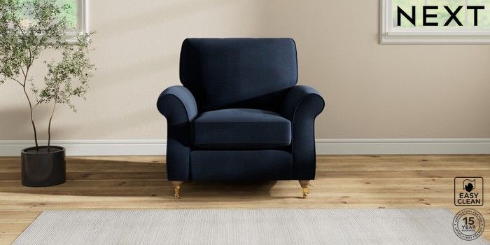 7.2.10 Ashford Armchair Fine Chenille Easy Clean Dark Navy Blue Castor - Light | Made Click here to use our website with more accessibility support, for example screen readers