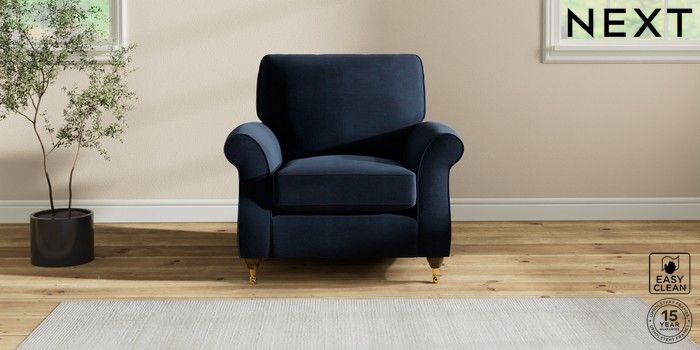 7.2.10 Ashford Armchair Fine Chenille Easy Clean Dark Navy Blue Castor - Mid | Made Click here to use our website with more accessibility support, for example screen readers