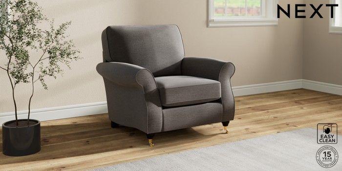 7.2.10 Ashford Armchair Fine Chenille Easy Clean Dark Smoke Grey Castor - Dark | Made Click here to use our website with more accessibility support, for example screen readers