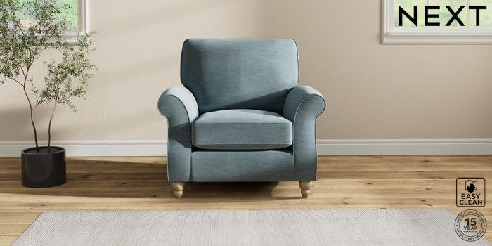 7.2.10 Ashford Armchair Fine Chenille Easy Clean Mid Blue Low Turned - Light | Made Click here to use our website with more accessibility support, for example screen readers
