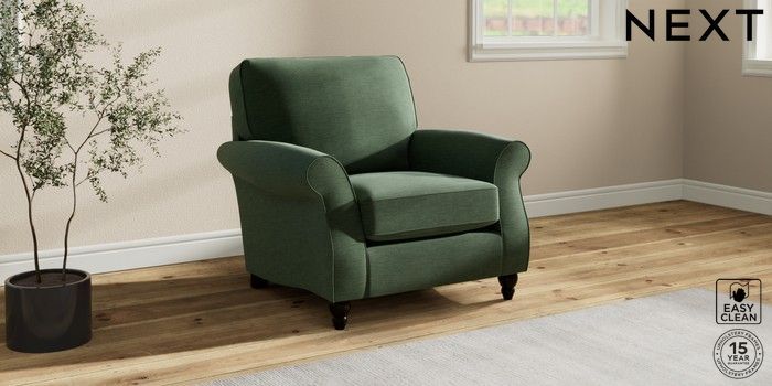 7.2.10 Ashford Armchair Fine Chenille Easy Clean Mid Khaki Green Low Turned - Dark | Made Click here to use our website with more accessibility support, for example screen readers