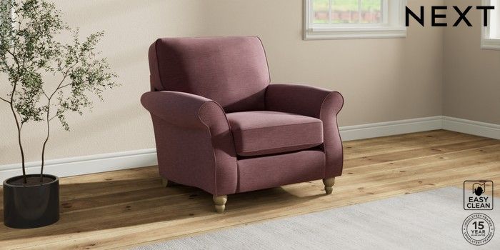 7.2.10 Ashford Armchair Fine Chenille Easy Clean Mid Mulberry Purple Low Turned - Light | Made Click here to use our website with more accessibility support, for example screen readers