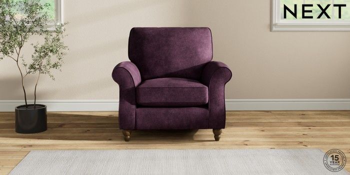 7.2.10 Ashford Armchair Plush Chenille Dark Plum Purple Low Turned - Mid | Made Click here to use our website with more accessibility support, for example screen readers
