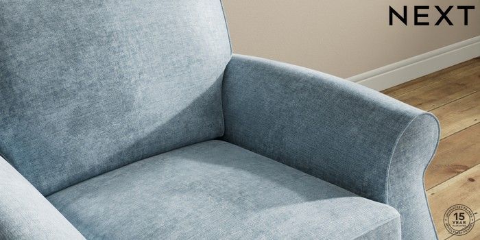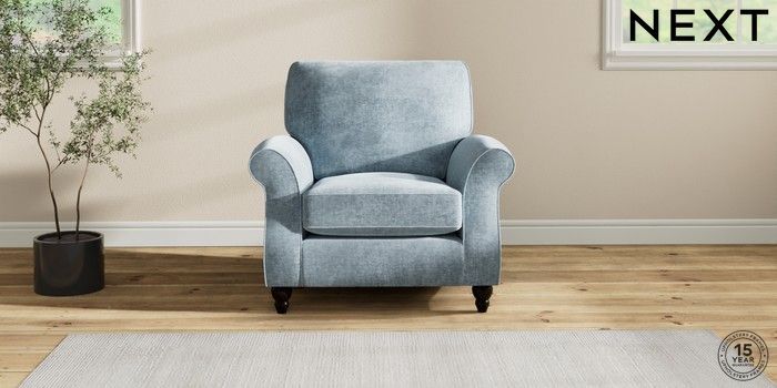 7.2.10 Ashford Armchair Plush Chenille Light Blue Low Turned - Dark | Made Click here to use our website with more accessibility support, for example screen readers