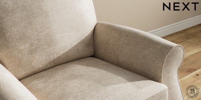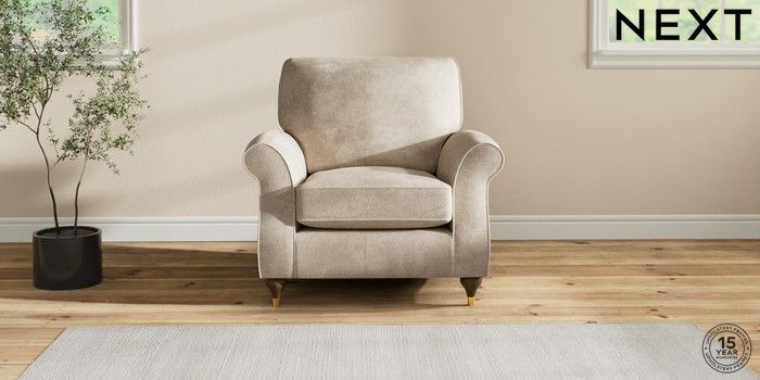7.2.10 Ashford Armchair Plush Chenille Light Natural Modern Turned Metal Cap - Mid | Made Click here to use our website with more accessibility support, for example screen readers