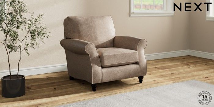7.2.10 Ashford Armchair Plush Chenille Mid Natural Low Turned - Dark | Made Click here to use our website with more accessibility support, for example screen readers