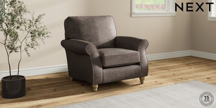 7.2.10 Ashford Armchair Plush Chenille Mink Brown Low Turned - Light | Made Click here to use our website with more accessibility support, for example screen readers
