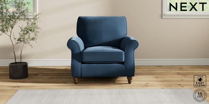 7.2.10 Ashford Armchair Plush Velvet Easy Clean Airforce Blue Low Turned - Mid | Made Click here to use our website with more accessibility support, for example screen readers