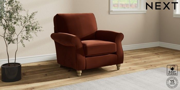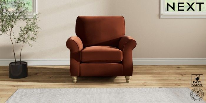 7.2.10 Ashford Armchair Plush Velvet Easy Clean Ginger Orange Low Turned - Light | Made Click here to use our website with more accessibility support, for example screen readers