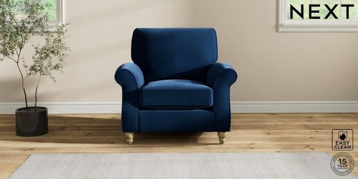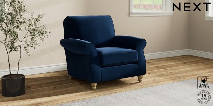 7.2.10 Ashford Armchair Plush Velvet Easy Clean Navy Blue Low Turned - Light | Made Click here to use our website with more accessibility support, for example screen readers