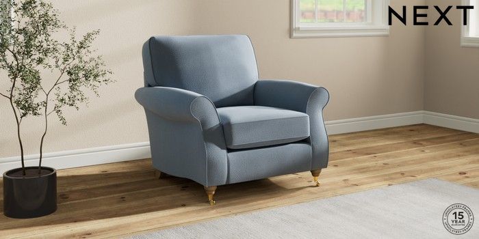 7.2.10 Ashford Armchair Relaxed Linen Look Mid Blue Castor - Light | Made Click here to use our website with more accessibility support, for example screen readers