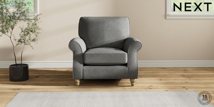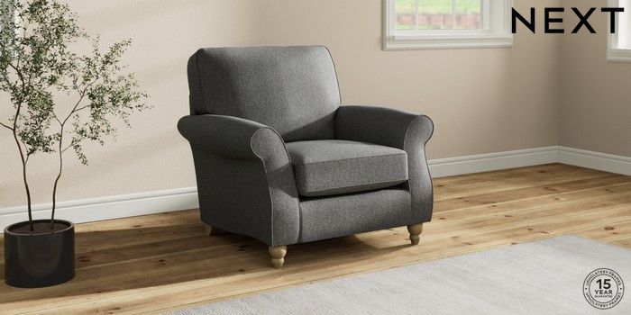 7.2.10 Ashford Armchair Tweedy Chenille Dark Grey Low Turned - Light | Made Click here to use our website with more accessibility support, for example screen readers