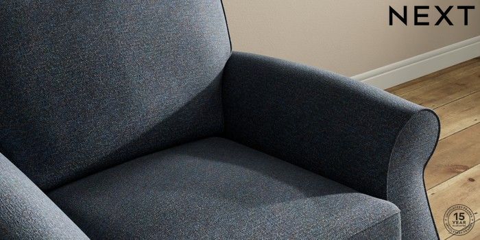 7.2.10 Ashford Armchair Tweedy Chenille Navy Blue Modern Turned Metal Cap - Mid | Made Click here to use our website with more accessibility support, for example screen readers