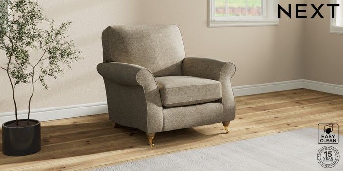 7.2.10 Ashford Armchair Woven Chenille Easy Clean Mid Natural Castor - Light | Made Click here to use our website with more accessibility support, for example screen readers