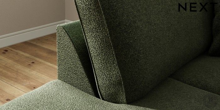7.2.10 Ashford Medium Corner Chaise - Left Hand Boucle Chenille Dark Moss Green Modern Turned Metal Cap - Mid | Made Click here to use our website with more accessibility support, for example screen readers