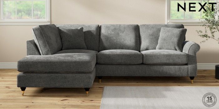 7.2.10 Ashford Medium Corner Chaise - Left Hand Chunky Chenille Dark Grey Castor - Dark | Made Click here to use our website with more accessibility support, for example screen readers