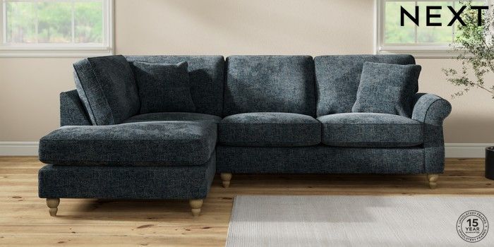7.2.10 Ashford Medium Corner Chaise - Left Hand Chunky Chenille Dark Navy Blue Low Turned - Light | Made Click here to use our website with more accessibility support, for example screen readers