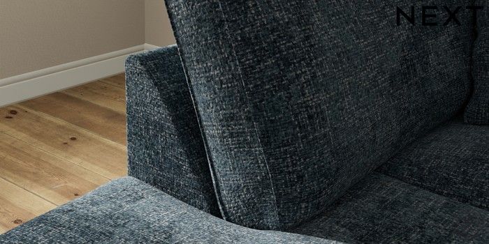 7.2.10 Ashford Medium Corner Chaise - Left Hand Chunky Chenille Dark Navy Blue Modern Turned Metal Cap - Mid | Made Click here to use our website with more accessibility support, for example screen readers