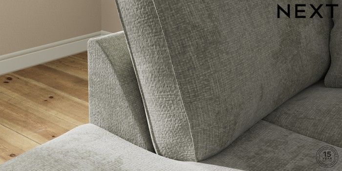 7.2.10 Ashford Medium Corner Chaise - Left Hand Chunky Chenille Light Grey Modern Turned Metal Cap - Mid | Made Click here to use our website with more accessibility support, for example screen readers