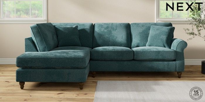 7.2.10 Ashford Medium Corner Chaise - Left Hand Chunky Chenille Mid Teal Green Low Turned - Mid | Made Click here to use our website with more accessibility support, for example screen readers