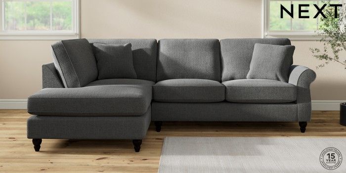 7.2.10 Ashford Medium Corner Chaise - Left Hand Chunky Texture Dark Grey Low Turned - Dark | Made Click here to use our website with more accessibility support, for example screen readers