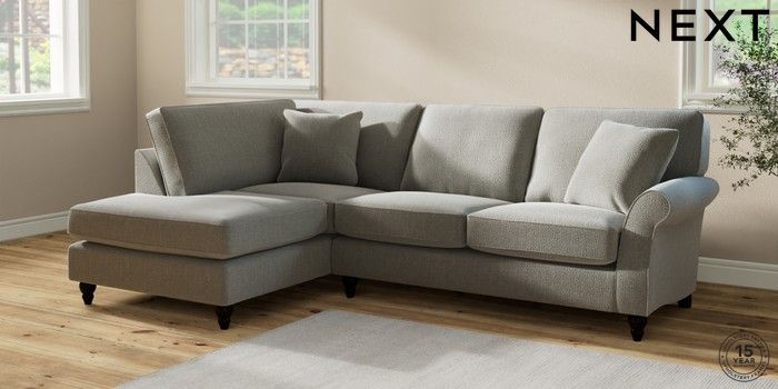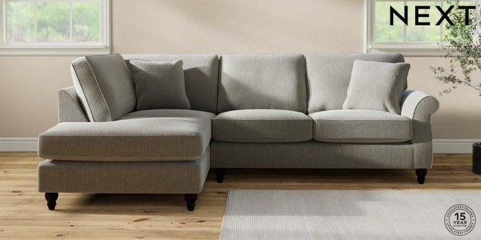 7.2.10 Ashford Medium Corner Chaise - Left Hand Chunky Texture Dove Low Turned - Dark | Made Click here to use our website with more accessibility support, for example screen readers