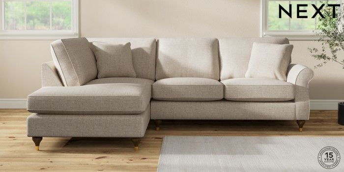 7.2.10 Ashford Medium Corner Chaise - Left Hand Chunky Weave Mid Natural Modern Turned Metal Cap - Mid | Made Click here to use our website with more accessibility support, for example screen readers