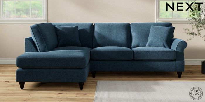 7.2.10 Ashford Medium Corner Chaise - Left Hand Cotswold Chenille Dark Blue Low Turned - Dark | Made Click here to use our website with more accessibility support, for example screen readers