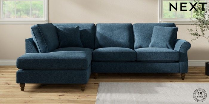 7.2.10 Ashford Medium Corner Chaise - Left Hand Cotswold Chenille Dark Blue Low Turned - Mid | Made Click here to use our website with more accessibility support, for example screen readers