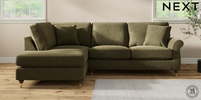 7.2.10 Ashford Medium Corner Chaise - Left Hand Cotswold Chenille Dark Green Castor - Mid | Made Click here to use our website with more accessibility support, for example screen readers