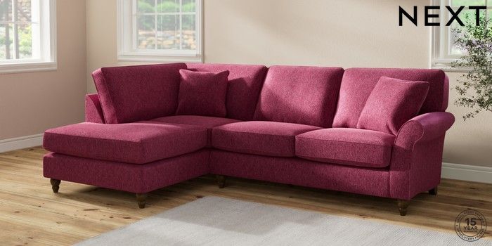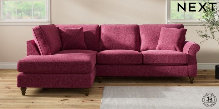 7.2.10 Ashford Medium Corner Chaise - Left Hand Cotswold Chenille Dark Raspberry Pink Low Turned - Mid | Made Click here to use our website with more accessibility support, for example screen readers