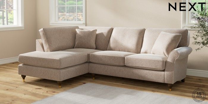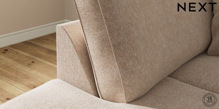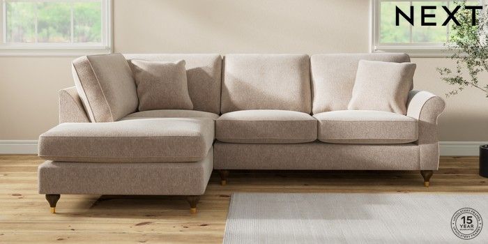 7.2.10 Ashford Medium Corner Chaise - Left Hand Cotswold Chenille Light Natural Modern Turned Metal Cap - Mid | Made Click here to use our website with more accessibility support, for example screen readers