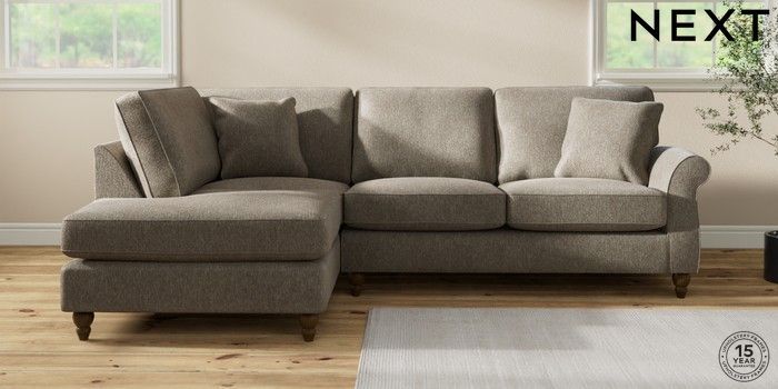 7.2.10 Ashford Medium Corner Chaise - Left Hand Cotswold Chenille Mid Mink Brown Low Turned - Mid | Made Click here to use our website with more accessibility support, for example screen readers