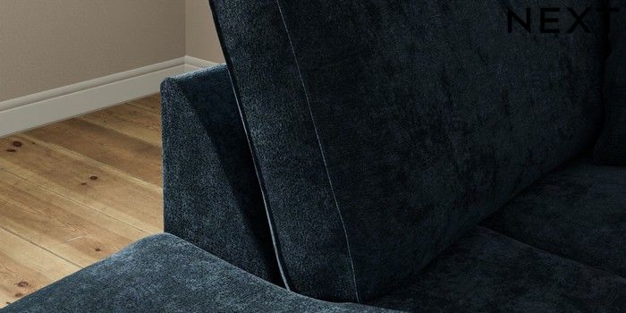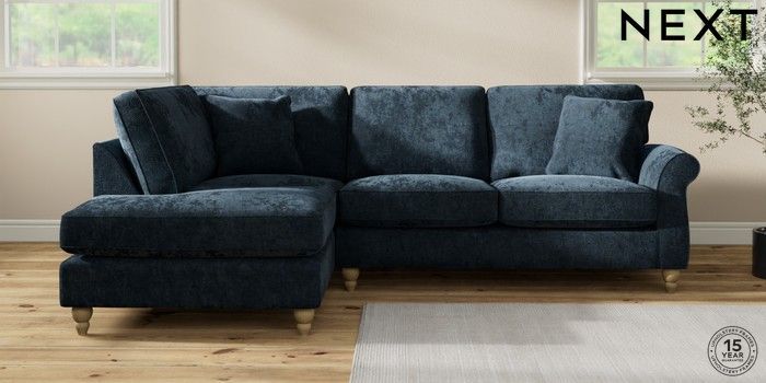 7.2.10 Ashford Medium Corner Chaise - Left Hand Distressed Velour Midnight Blue Low Turned - Light | Made Click here to use our website with more accessibility support, for example screen readers