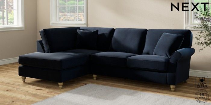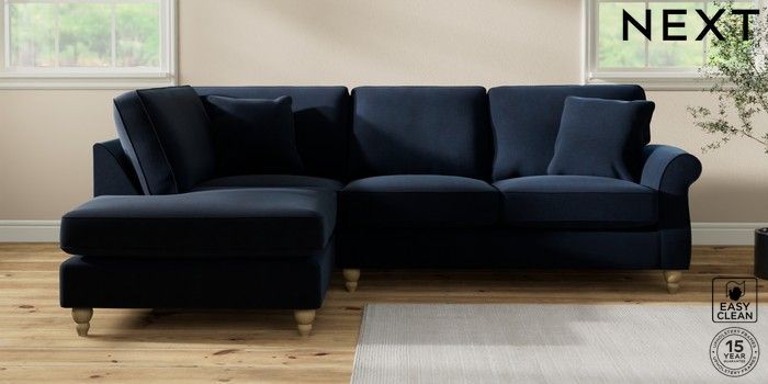 7.2.10 Ashford Medium Corner Chaise - Left Hand Fine Chenille Easy Clean Dark Navy Blue Low Turned - Light | Made Click here to use our website with more accessibility support, for example screen readers