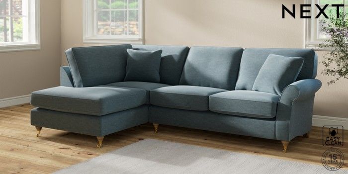 7.2.10 Ashford Medium Corner Chaise - Left Hand Fine Chenille Easy Clean Mid Blue Castor - Light | Made Click here to use our website with more accessibility support, for example screen readers
