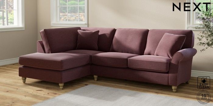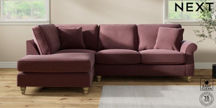 7.2.10 Ashford Medium Corner Chaise - Left Hand Fine Chenille Easy Clean Mid Mulberry Purple Low Turned - Light | Made Click here to use our website with more accessibility support, for example screen readers