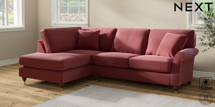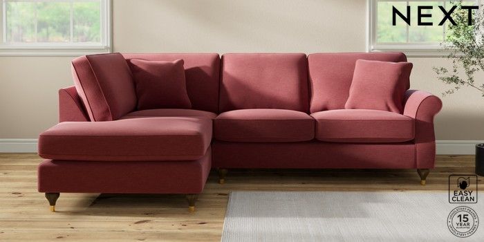 7.2.10 Ashford Medium Corner Chaise - Left Hand Fine Chenille Easy Clean Mid Pink Modern Turned Metal Cap - Mid | Made Click here to use our website with more accessibility support, for example screen readers