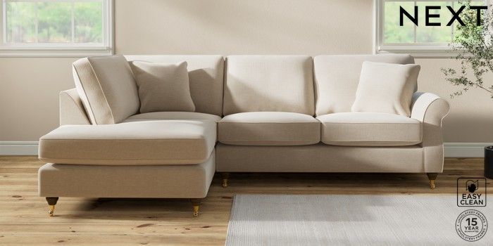 7.2.10 Ashford Medium Corner Chaise - Left Hand Fine Chenille Easy Clean Oyster Castor - Mid | Made Click here to use our website with more accessibility support, for example screen readers