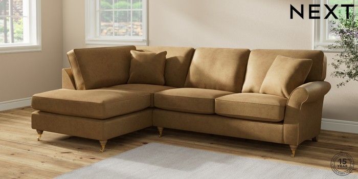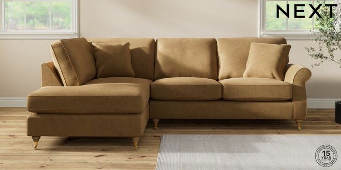 7.2.10 Ashford Medium Corner Chaise - Left Hand Luxe Chenille Honey Yellow Castor - Light | Made Click here to use our website with more accessibility support, for example screen readers