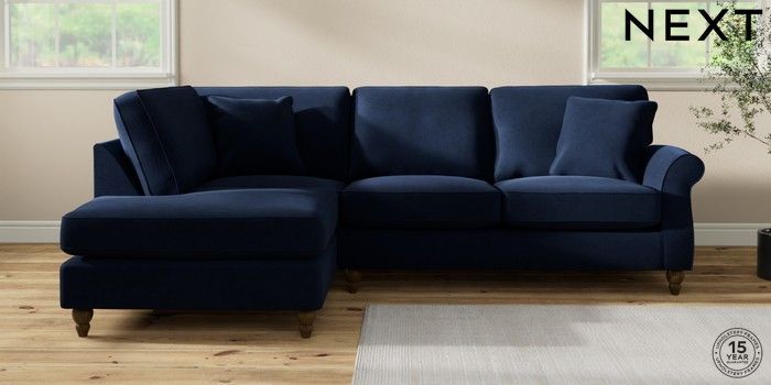7.2.10 Ashford Medium Corner Chaise - Left Hand Luxe Chenille Navy Blue Low Turned - Mid | Made Click here to use our website with more accessibility support, for example screen readers