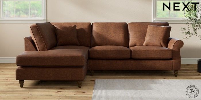 7.2.10 Ashford Medium Corner Chaise - Left Hand Monza Faux Leather Easy Clean Chestnut Brown Low Turned - Mid | Made Click here to use our website with more accessibility support, for example screen readers