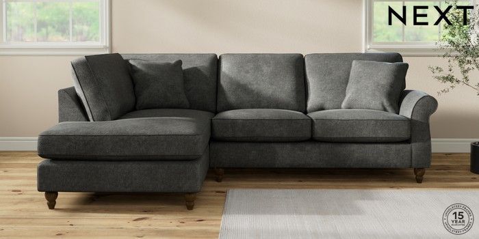 7.2.10 Ashford Medium Corner Chaise - Left Hand Plush Chenille Dark Grey Low Turned - Mid | Made Click here to use our website with more accessibility support, for example screen readers