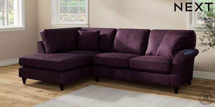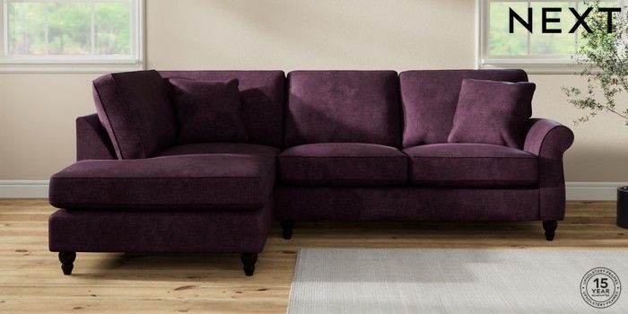 7.2.10 Ashford Medium Corner Chaise - Left Hand Plush Chenille Dark Plum Purple Low Turned - Dark | Made Click here to use our website with more accessibility support, for example screen readers