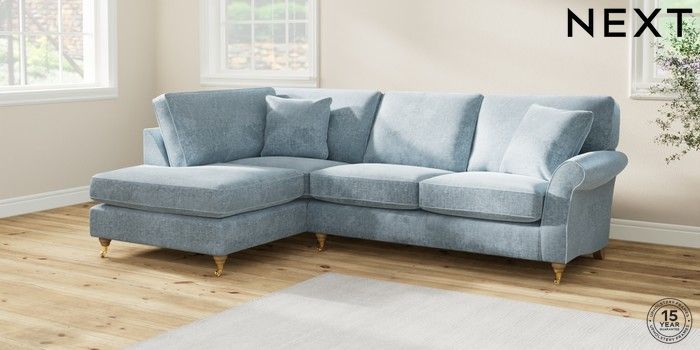 7.2.10 Ashford Medium Corner Chaise - Left Hand Plush Chenille Light Blue Castor - Light | Made Click here to use our website with more accessibility support, for example screen readers