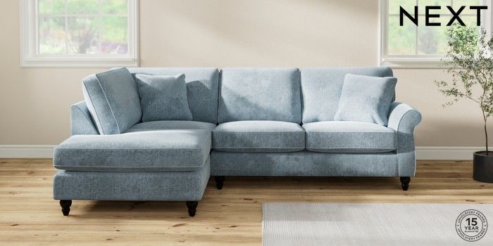 7.2.10 Ashford Medium Corner Chaise - Left Hand Plush Chenille Light Blue Low Turned - Dark | Made Click here to use our website with more accessibility support, for example screen readers