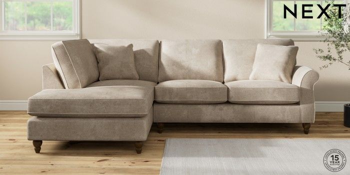 7.2.10 Ashford Medium Corner Chaise - Left Hand Plush Chenille Light Natural Low Turned - Mid | Made Click here to use our website with more accessibility support, for example screen readers