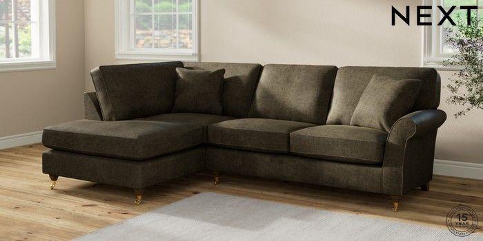 7.2.10 Ashford Medium Corner Chaise - Left Hand Plush Chenille Moss Green Castor - Mid | Made Click here to use our website with more accessibility support, for example screen readers
